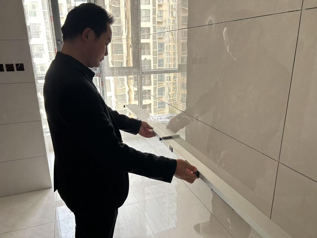 ▲检查阳台砖有无空鼓,用一个空鼓锤敲瓷砖,有空洞声音,就说明没有铺设好。