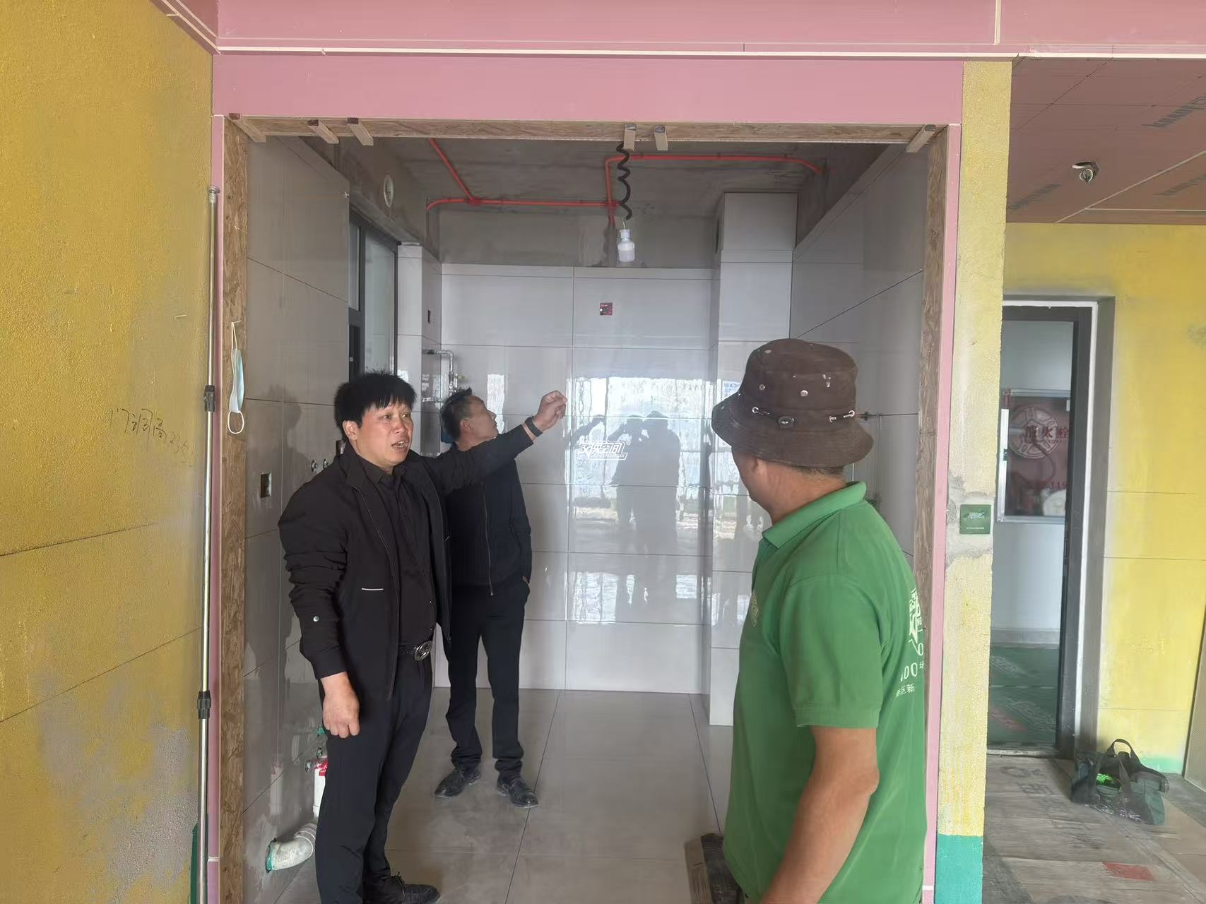 ▲泥工问题跟师傅现场探讨。