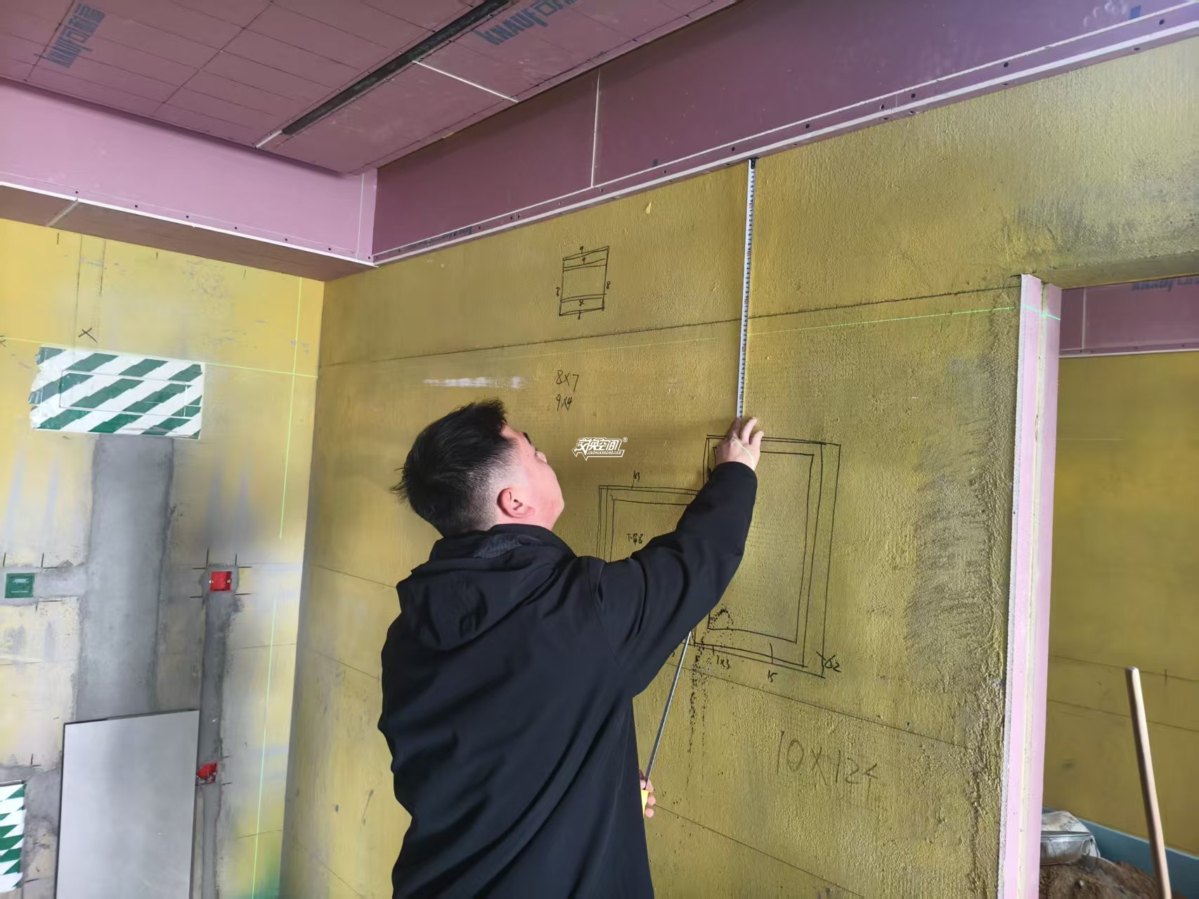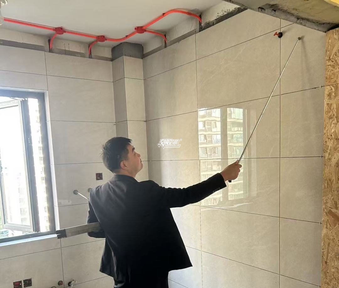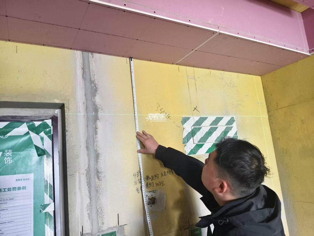 ▲测量酒柜安装问题。