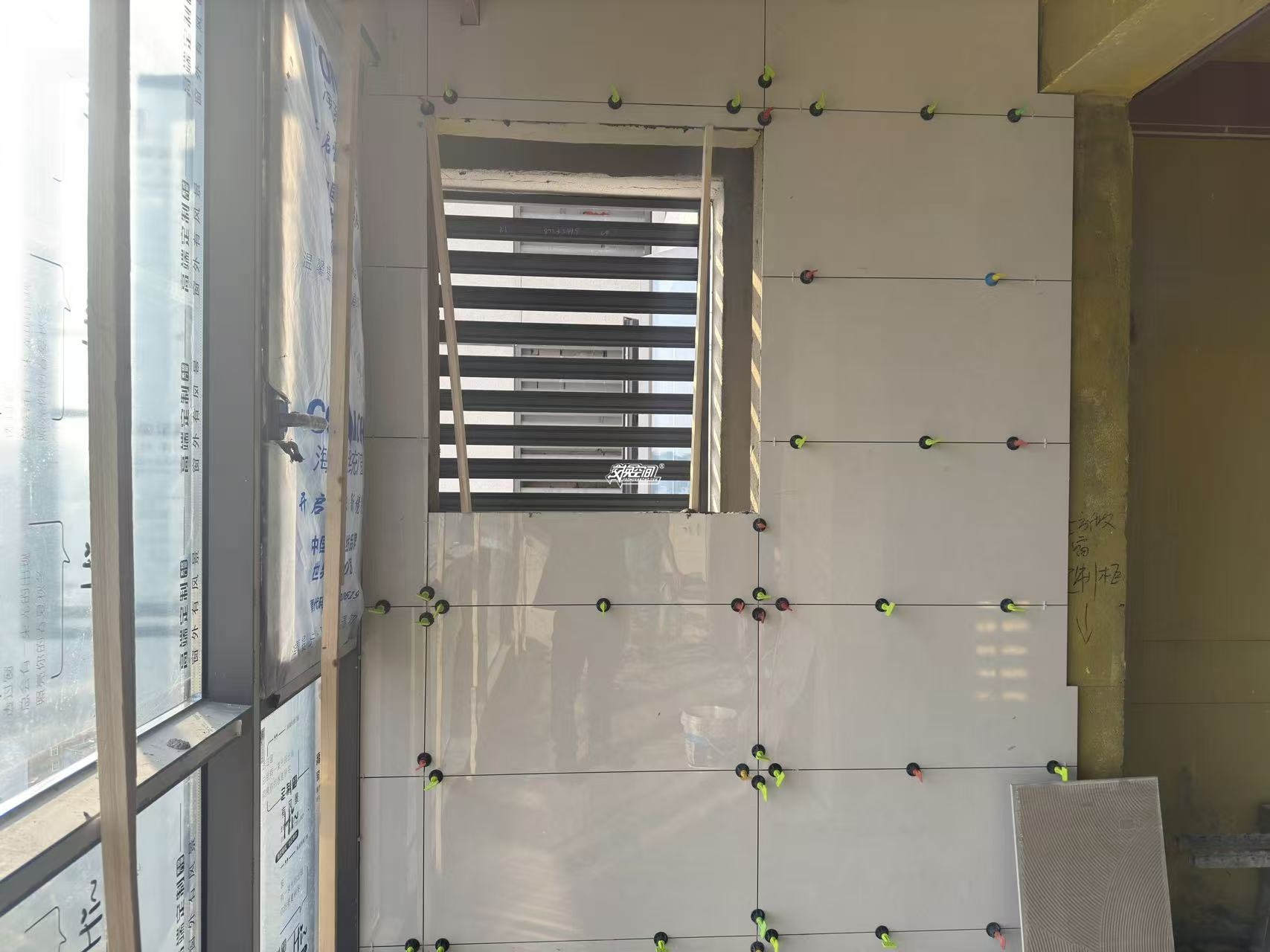 ▲十字卡固定贴砖缝隙大小,保持墙面砖的横平竖直。